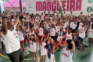 Mês das Crianças termina em clima de alegria no IMF Azulino, mascote da Águas do Rio, fez a festa com a garotada do Centro de Referência Esportiva MangueiraSaiba mais