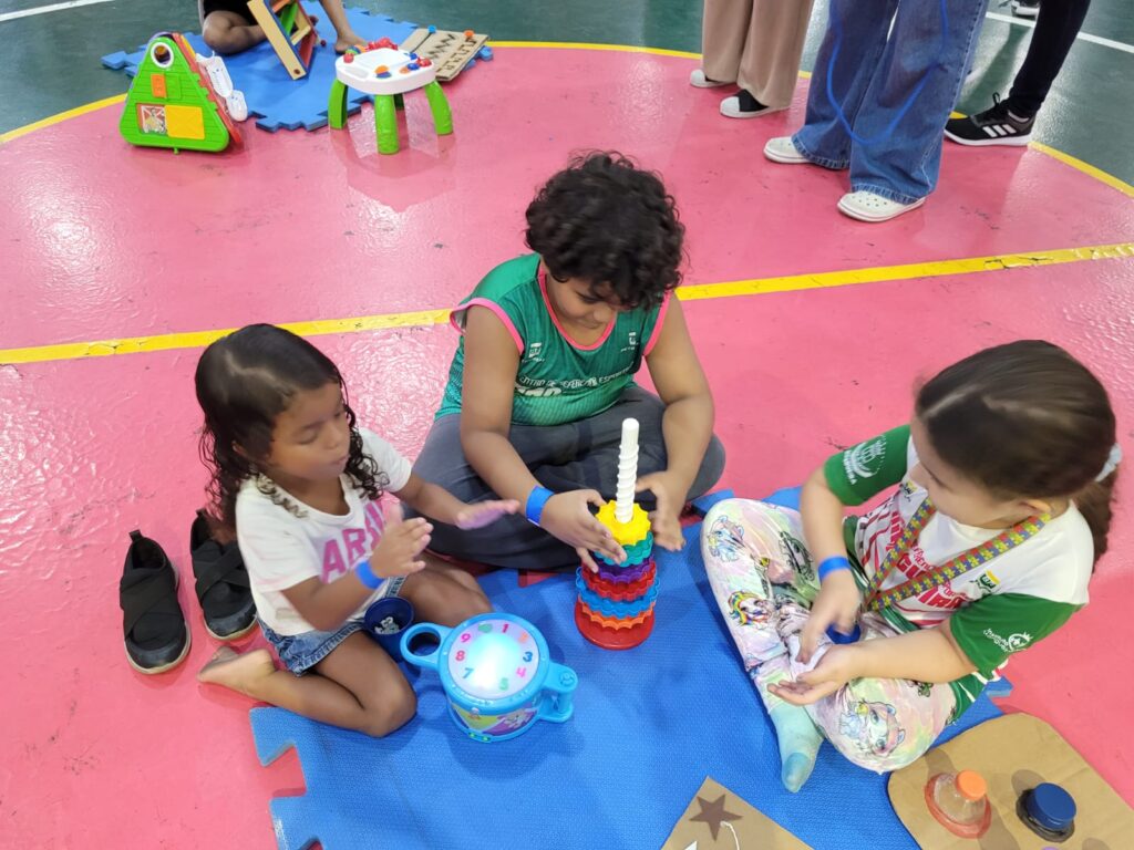 A celebração aconteceu no Ginásio Carlos Dória e contou com a parceria do CMS Tia Alice e da Águas do Rio, encerrando o mês com muita energia, brincadeiras e sorrisos.