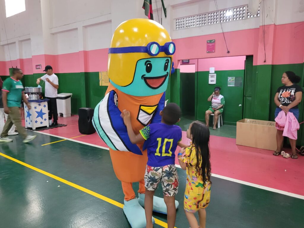 A grande atração foi o Azulino, mascote da Águas do Rio, que conquistou as crianças com sua animação e talento. Ele mostrou todo o gingado ao lado dos professores e se divertiu nas brincadeiras, espalhando ainda mais alegria pelo ginásio.